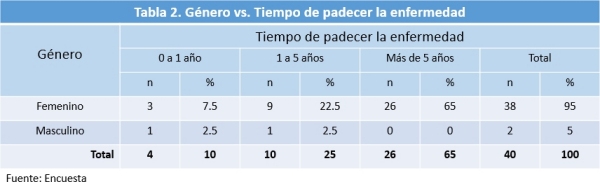 femenino, 65% manifestó tener más de 5 años de padecer