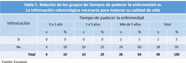 pacientes que tienen más de 5 años de padecer la enfermedad, 5%