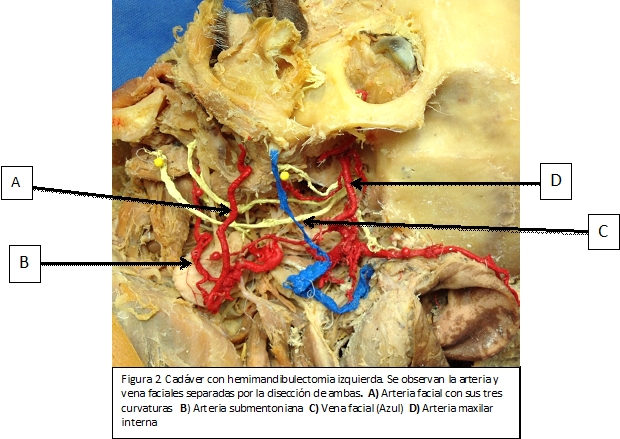donde realiza su última curvatura, la facial. En dicho punto la arteria