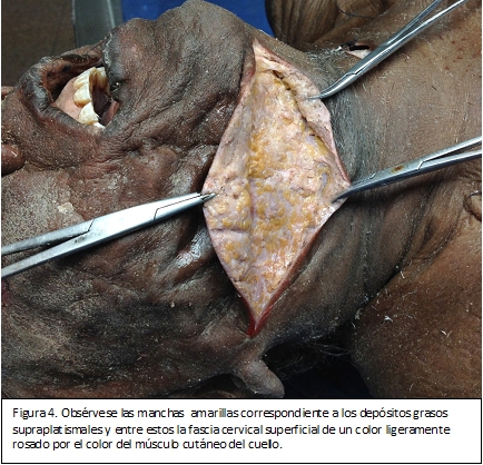 grasos que corresponden a los depósitos supraplatismales y hebras musculares