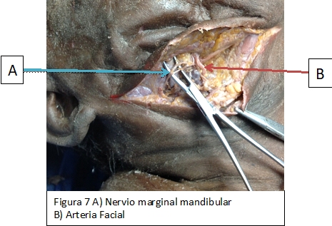 en el 28%. La rama mandibular pasa encima de la arteria facial una vez que