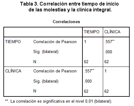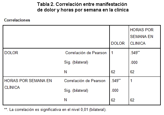 entre la práctica clínica y la presencia de dolor. El tiempo