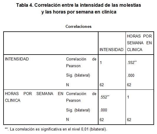 clínica más intensidad de molestias presenta el alumno. (Tabla