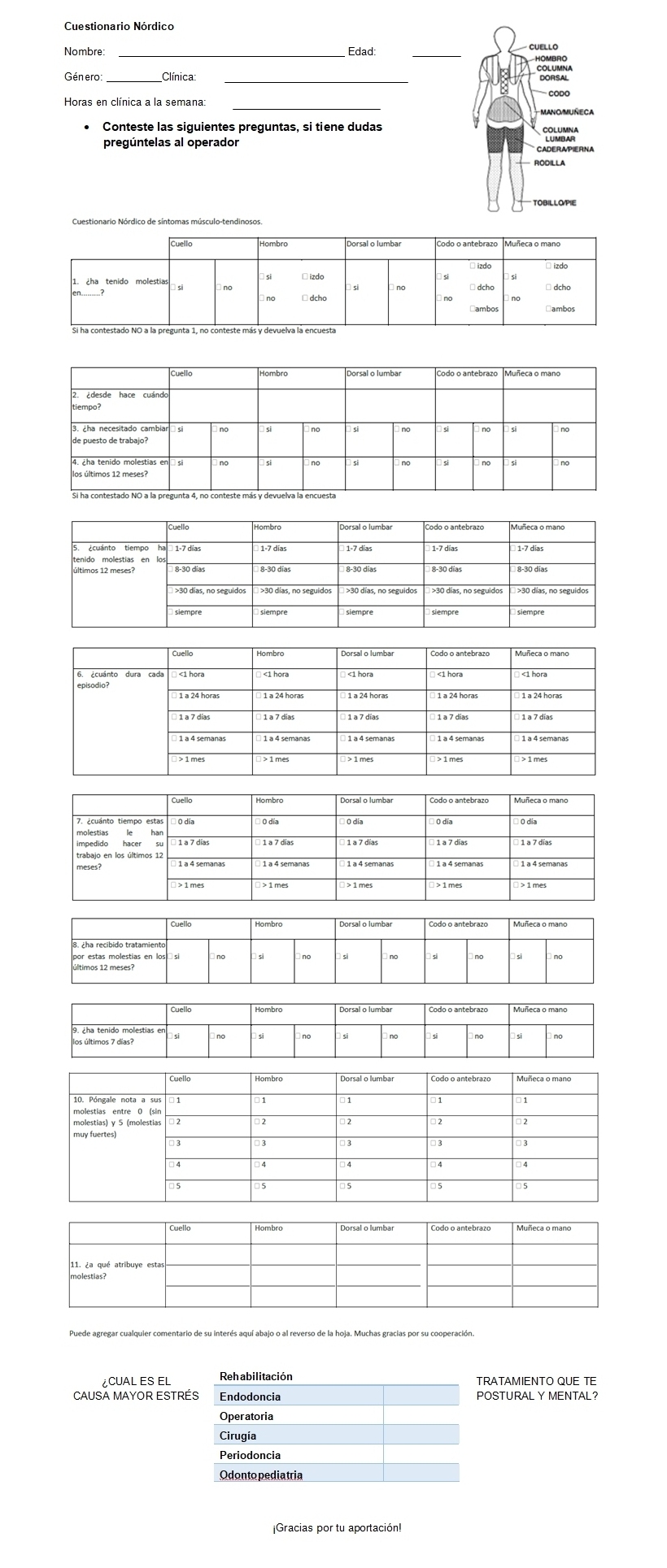 fueron evaluados por medio del cuestionario nórdico de Kuorinka para