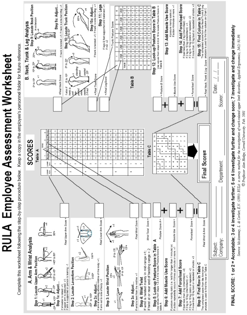 y el método R.U.L.A. para evaluar las posturas. El análisis