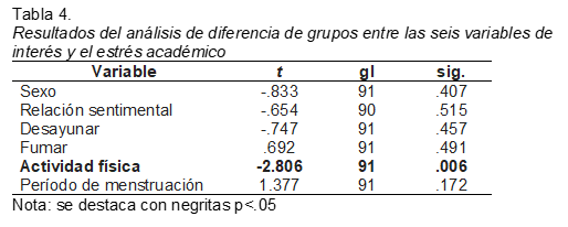 las diferentes variables estudiadas solamente la actividad física presenta